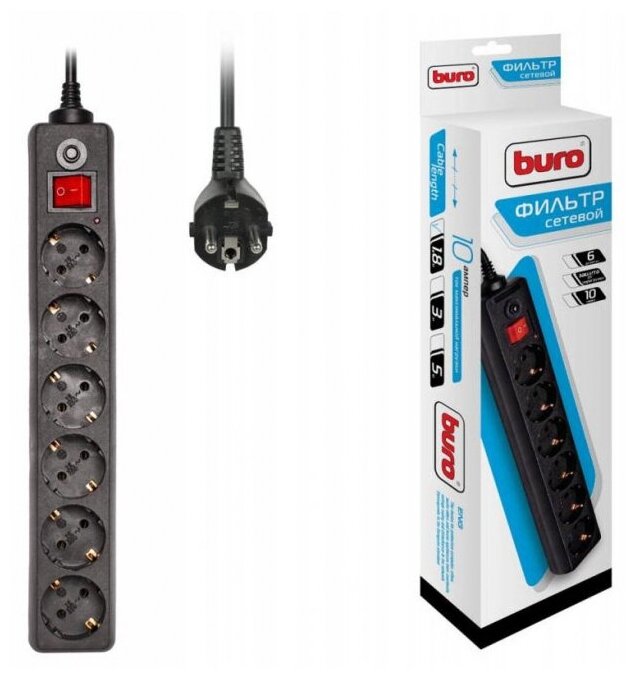 Отзывы на Комплект 3 штук, Сетевой фильтр Buro 600SH-1.8-B 1.8м (6 розеток) черный