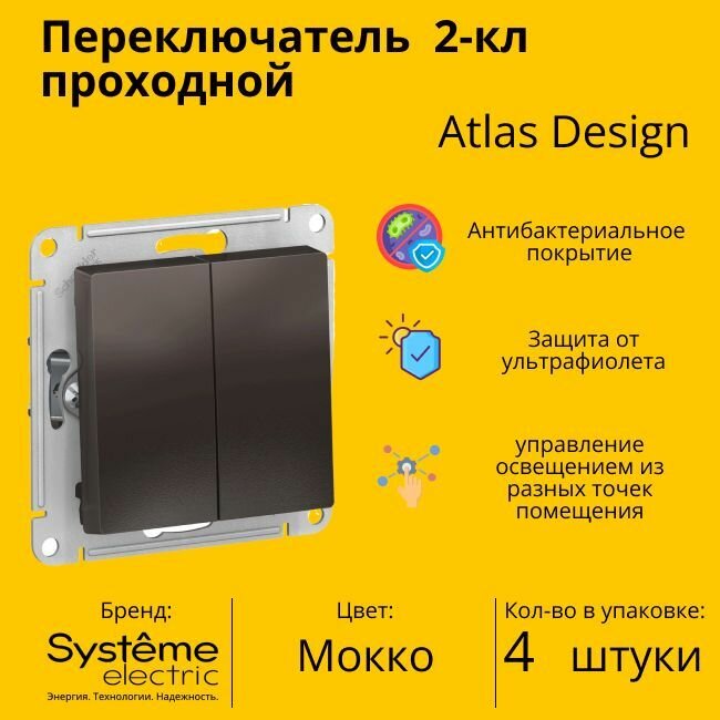 10 цен на Переключатель двухклавишный ATLASDESIGN схема 6 10АХ механизм мокко | код ATN000665 | Schneider Electric (4шт.в упак.)