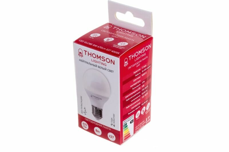 Лампочка Thomson TH-B2040 8 Вт, E27, 4000K, шар, нейтральный белый свет информация: