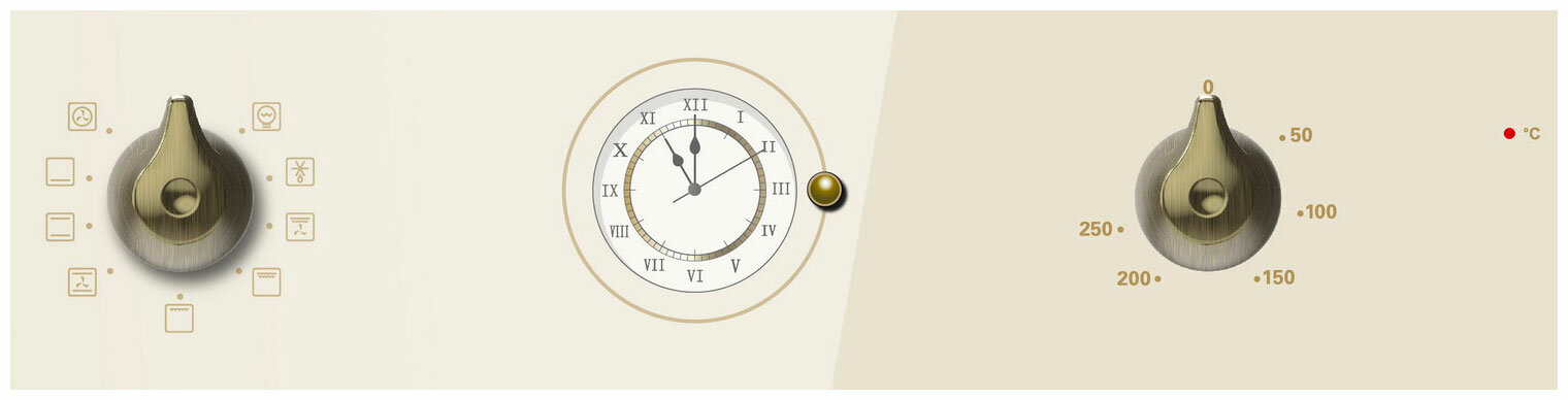 Встраиваемый духовой шкаф ретро-стекло MIDEA MO58110RGI-B Цвет: слоновая кость-бронза, 8 режимо