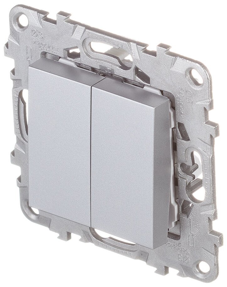 Переключатель SYSTEME ELECTRIC (SCHNEIDER ELECTRIC) SCHNEIDER ELECTRIC UNICA NEW 2-клавишный, 2 х сх. 6 алюминий, NU521330