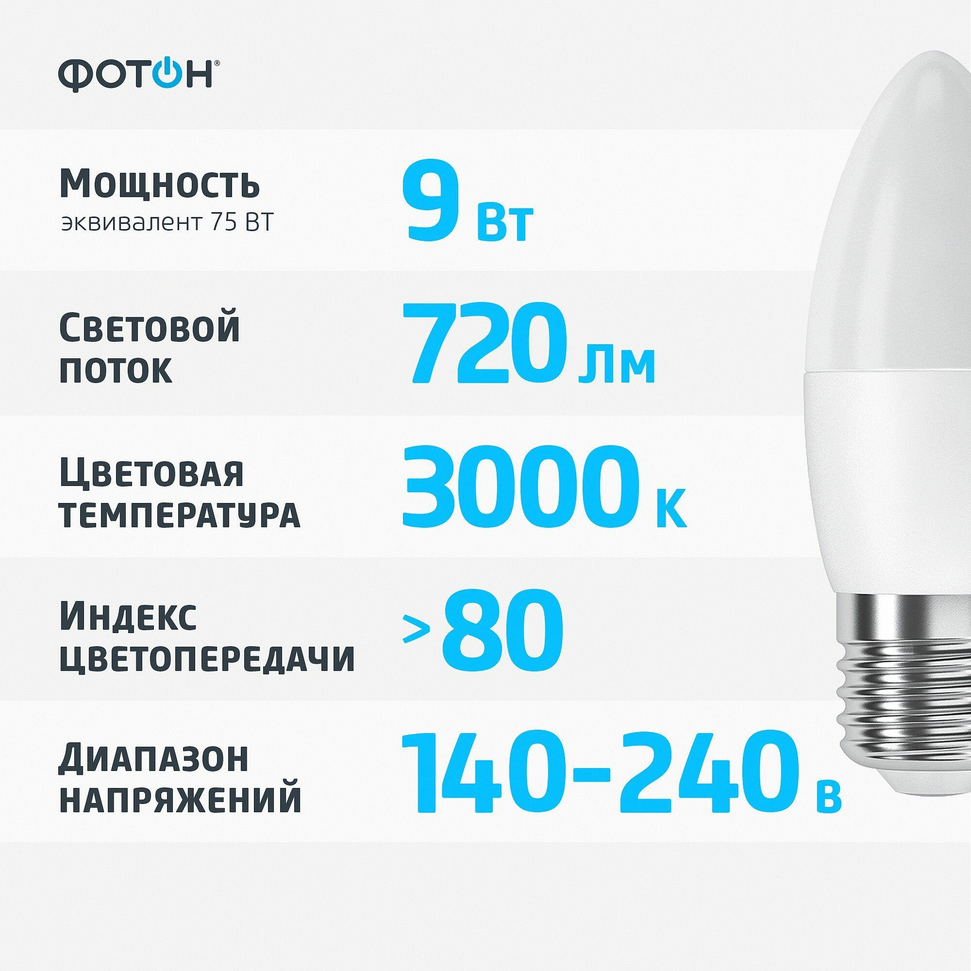 Фотон Лампа светодиодная LED B35 9W E27 3000K 23973 .