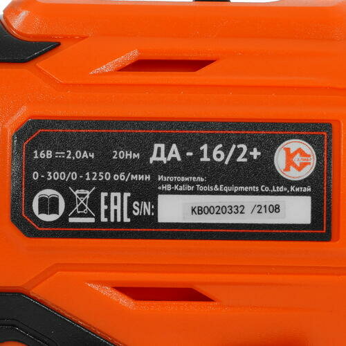 Дрель-шуруповёрт калибр ДА- 16/2+ 0-1250 об/мин, оранжевый