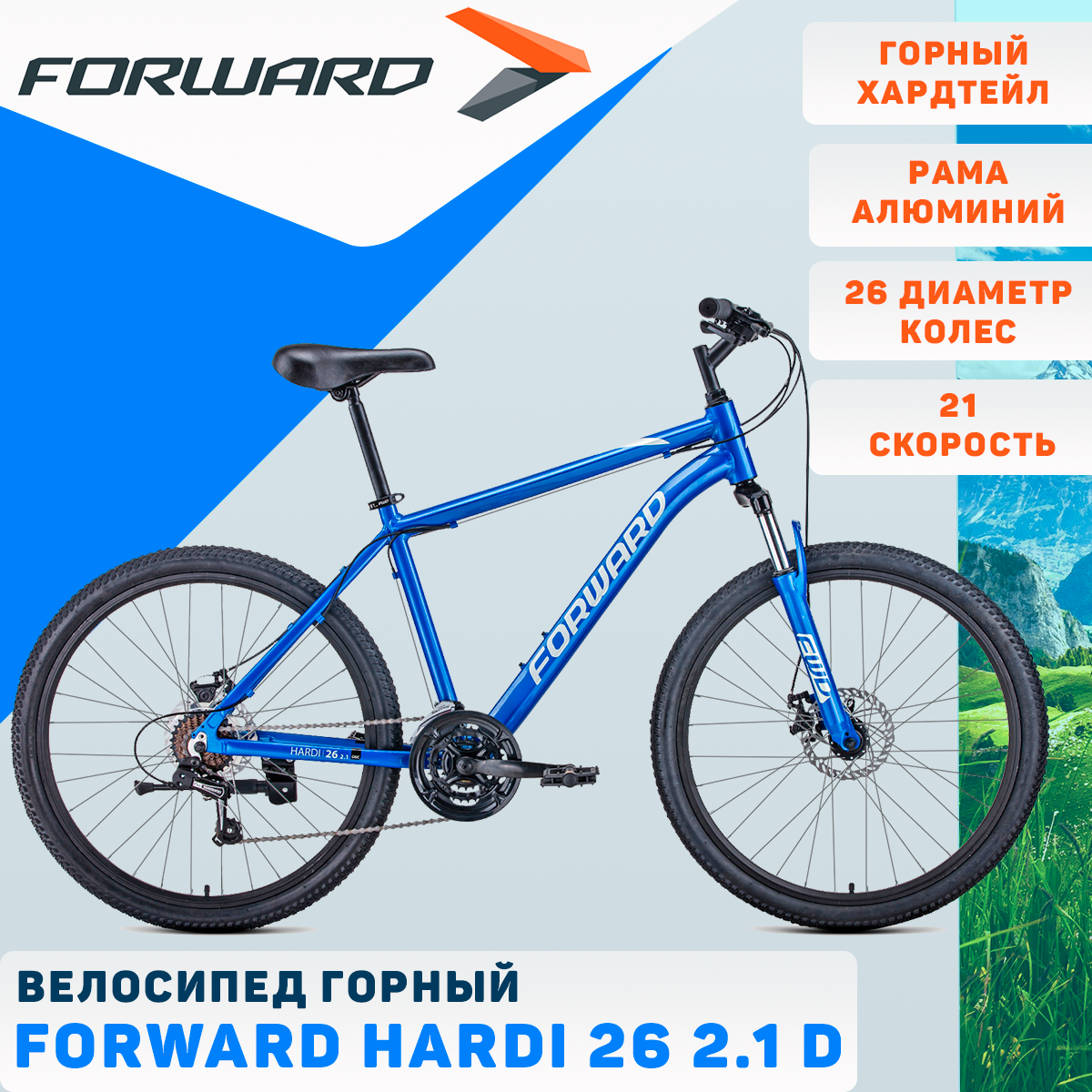 10 цен на Велосипед Forward Hardi 26 2.1 D (26' 21 ск. рост. 18') 2022, синий/бежевый, RBK22FW26706