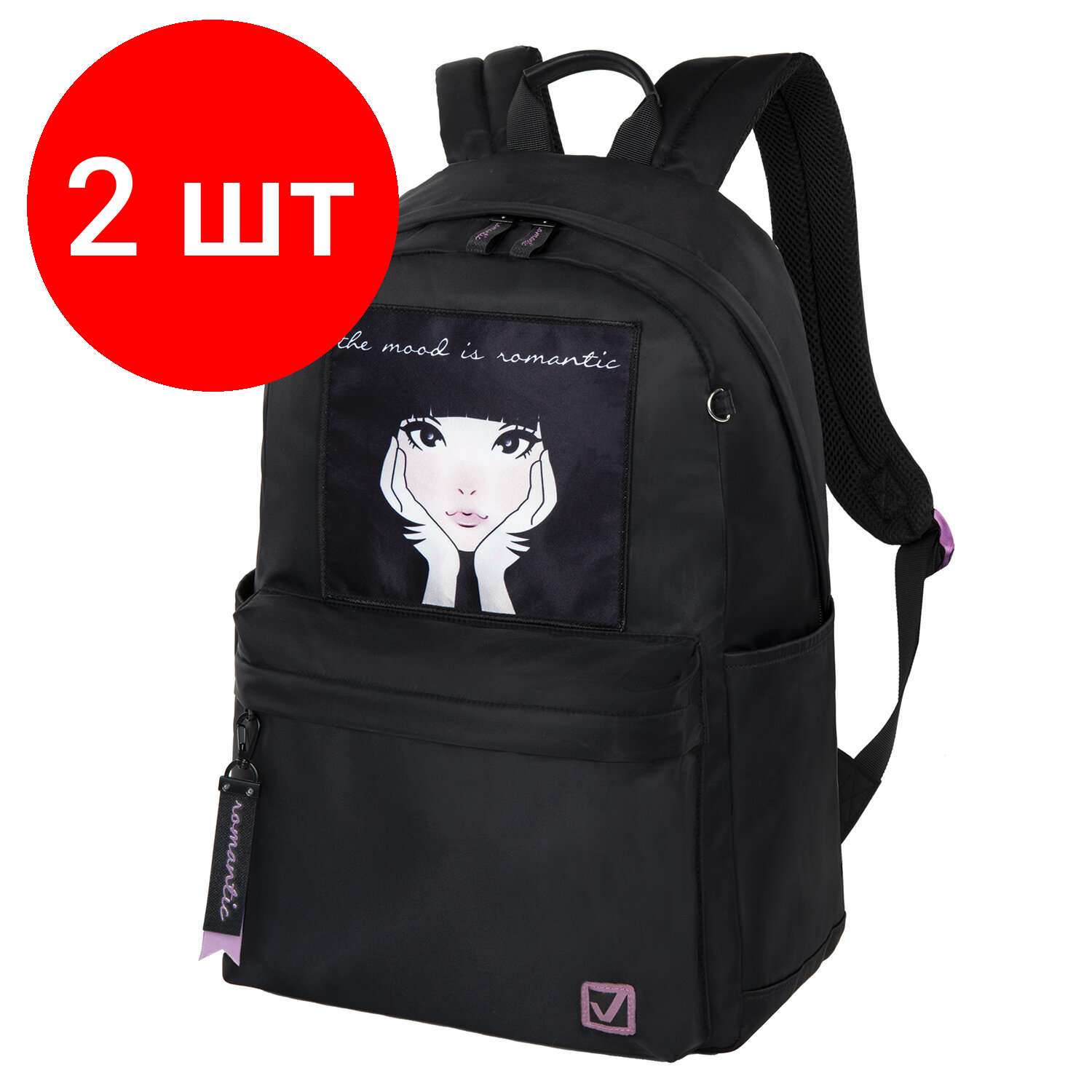Комплект 2 шт, Рюкзак BRAUBERG FASHION CITY универсальный, "Romantic", черный, 44х31х16 см, 270808 информация: