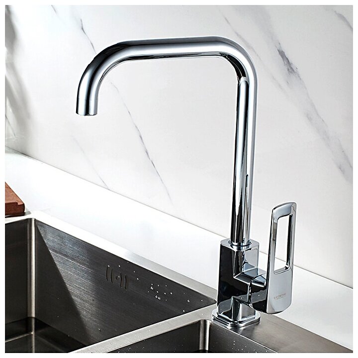 Высокий однорычажный смеситель для кухонной мойки (раковины) с поворотным изливом Ledeme L1066 хром, латунь