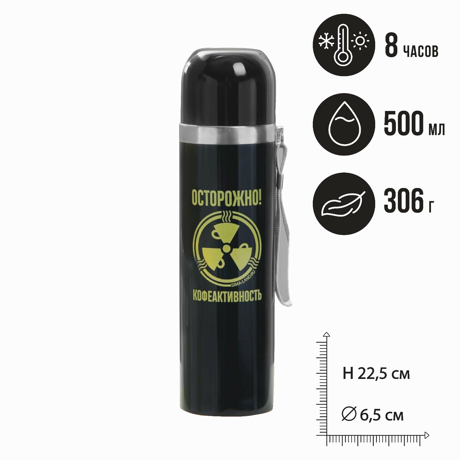 Термос "Осторожно", 500 мл, время сохранения тепла 4-8 ч