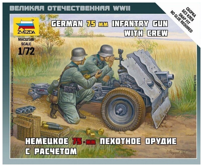 Отзывы на Сборные солдатики ZVEZDA Немецкое 75-мм пехотное орудие с расчетом, 1/72, ZV-6156