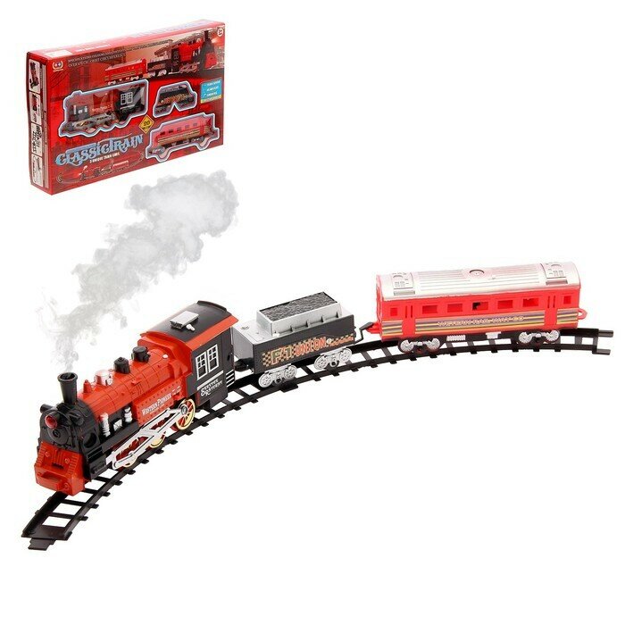 Железная дорога "Классический поезд", свет и звук, с дымом, работает от батареек, цв микс 2612227