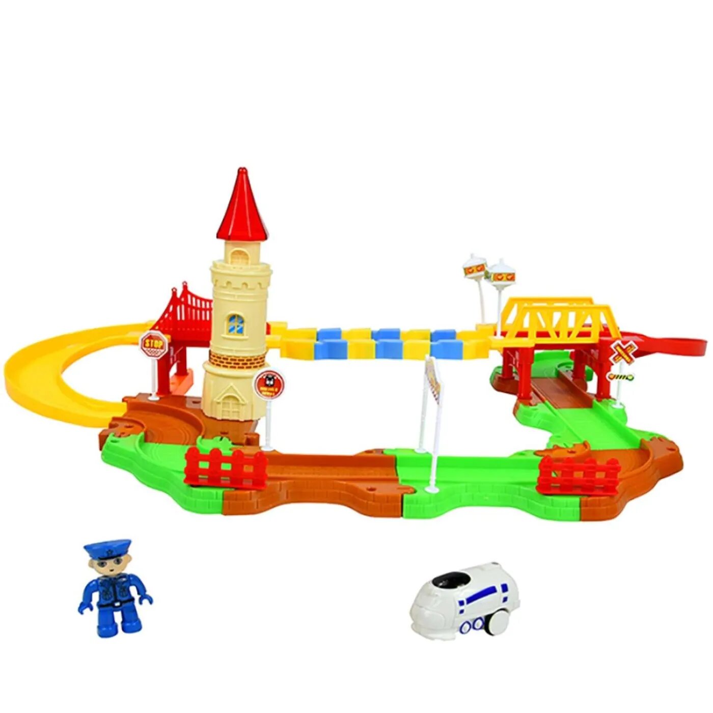 Игровой набор QI YUE "Железная дорога: Башня и большой мост" (35х46х18 см, 33 дет., подвиж. поезд, а