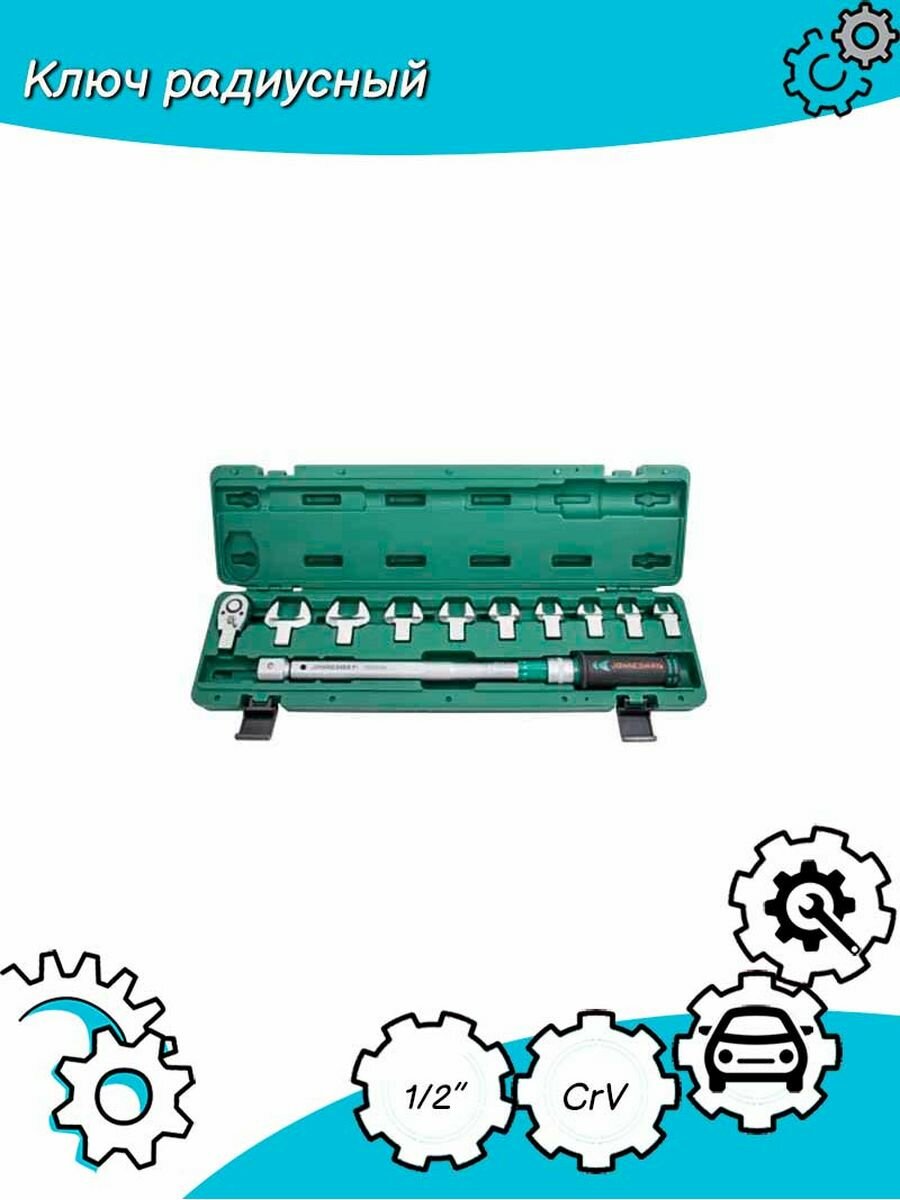10 цен на Jonnesway T30200NS Ключ динамометрический 1/2"DR со сменными рожковыми насадками 13-30 мм и приводом, 40-200 Нм 49853