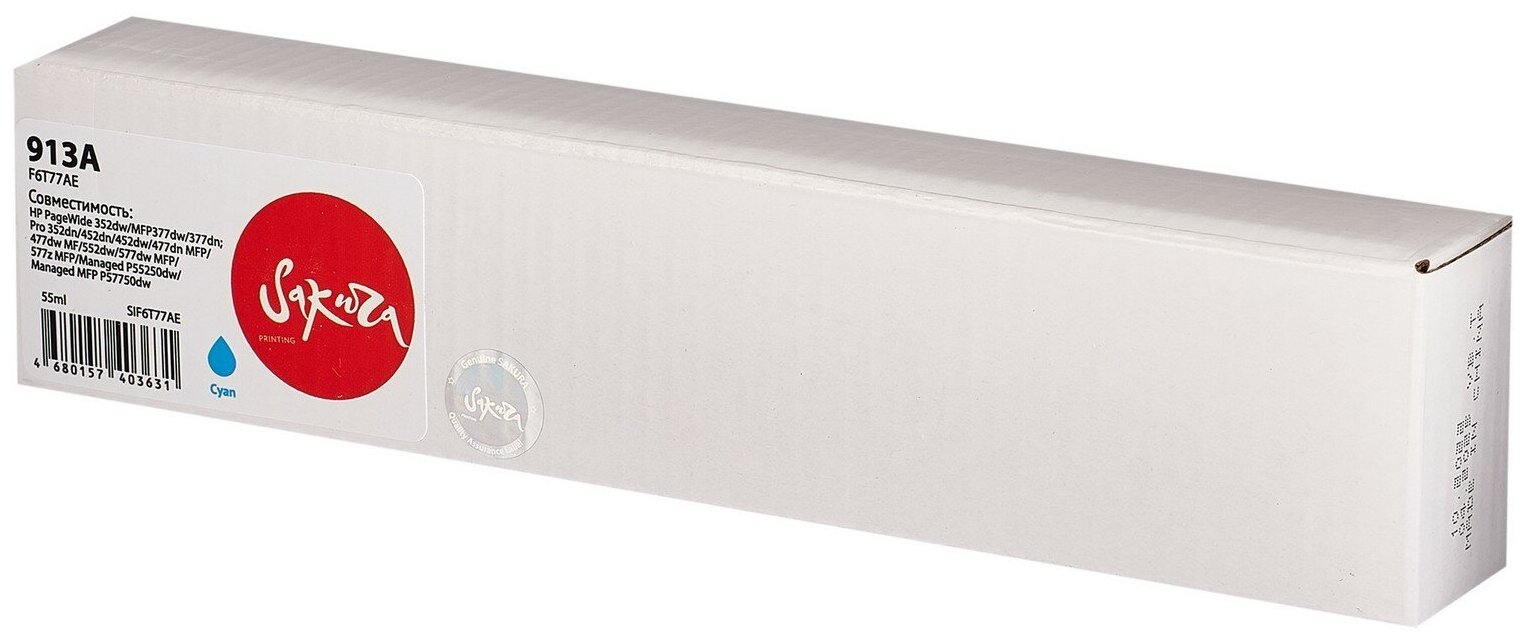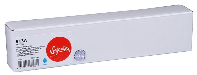 Отзывы на Картридж Sakura F6T77AE (№913A Cyan) для HP, голубой, 55 мл., 3000 к.