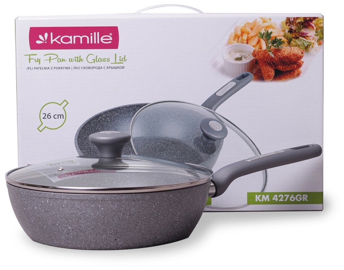 Сковорода Kamille KM-4272GR, с крышкой, диаметр 26 см