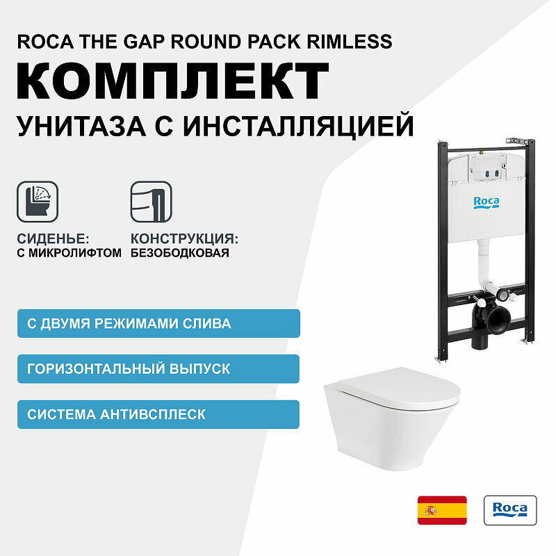 ПЭК: Roca The Gap Round Pack подвесной унитаз Rimless + инсталляция + сиденье Supralit (7.8931.0.500.0) информация: