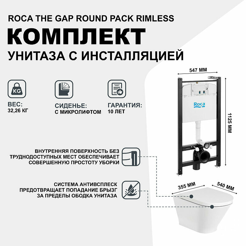 Унитаз+инсталляция+сиденье Supralit Roca ПЭК THE GAP ROUND RIMLESS NEW 7.8931.0.500.0