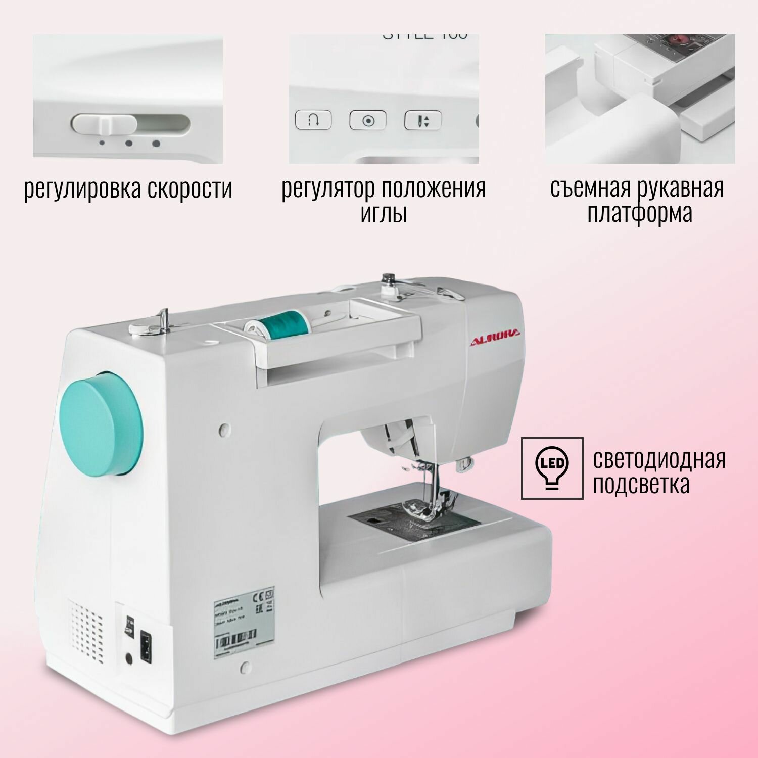 Швейная машина Aurora Style 100, горизонтальный челнок, 80 операций для шитья, дисплей информация:
