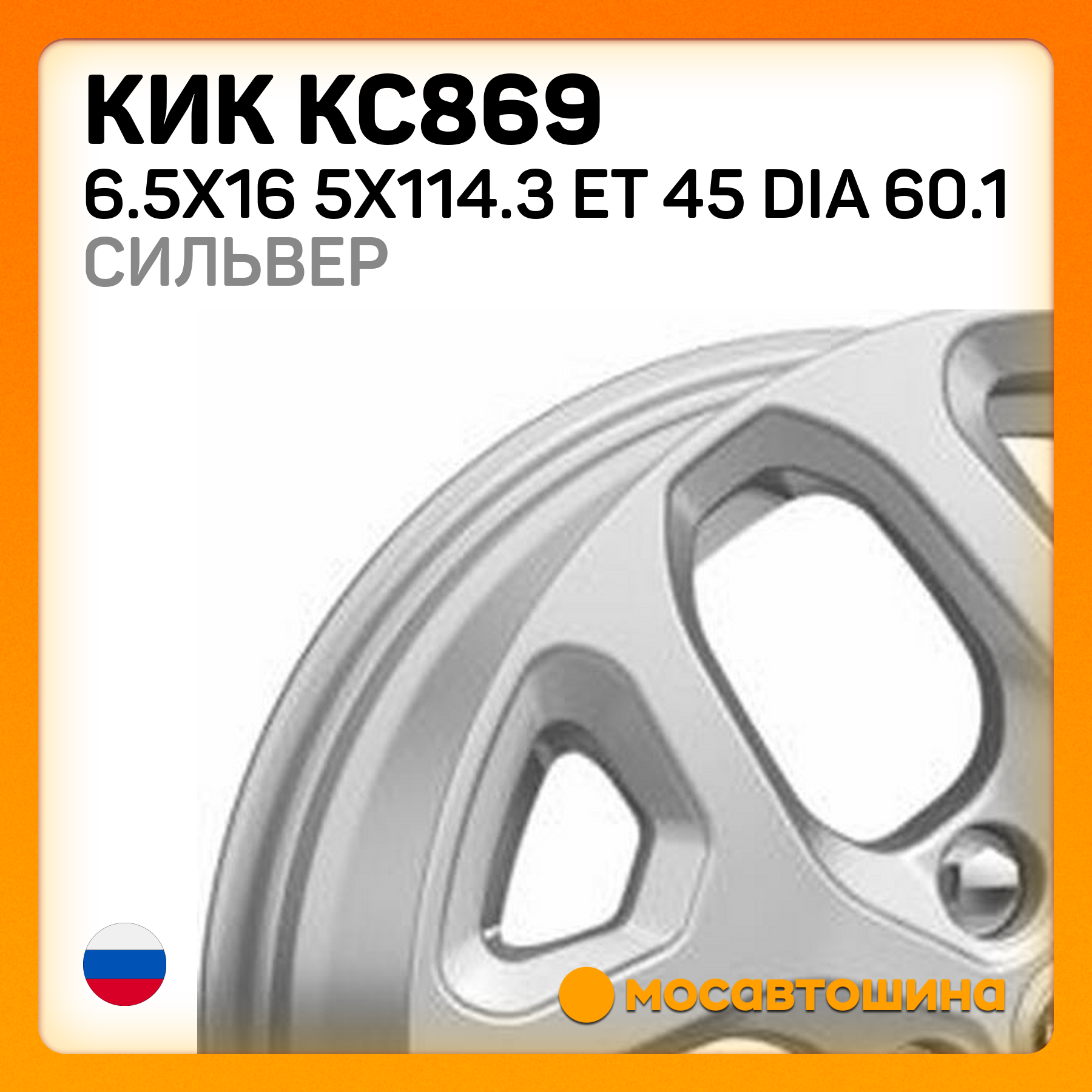 КиК КС869 6.5x16 5x114.3 ET 45 Dia 60.1 сильвер информация: