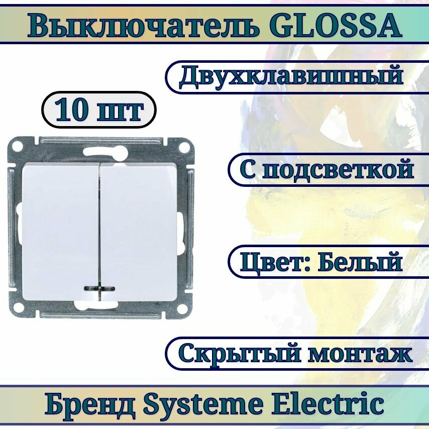 Выключатель двухклавишный белый / выключатель с подсветкой Glossa Systeme Electric GSL000153 10шт