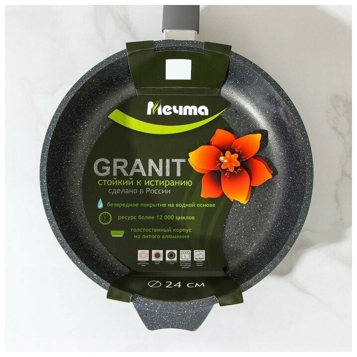 Отзывы на Сковорода "Гранит", d: 24 см, пластиковая ручка, антипригарное покрытие, цвет серый