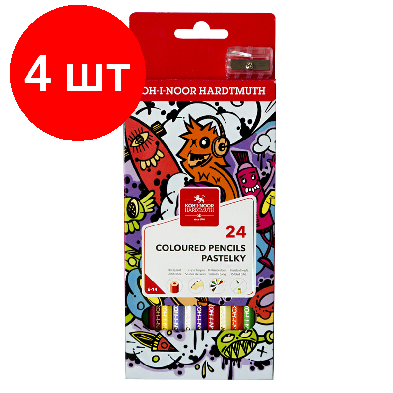 10 цен на Комплект 4 шт, Карандаши цветные Koh-I-Noor "Teenage", 24цв., заточен., картон, европодвес