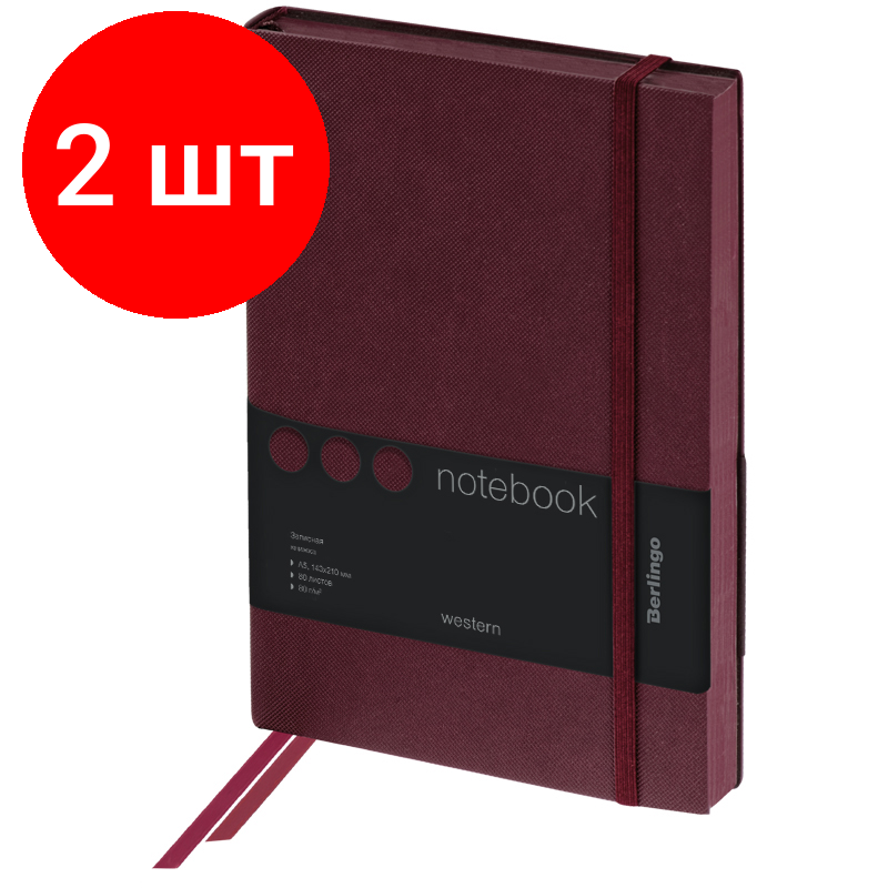 Комплект 2 шт, Записная книжка А5 80л., кожзам, Berlingo "Western", с резинкой, коричневый информация: