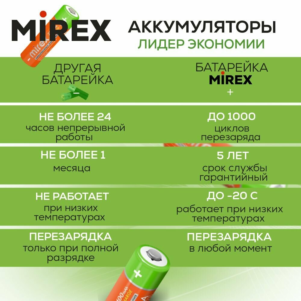 Аккумулятор Mirex, Ni-Mh, AAA, HR03-2BL, 1.2В, 1000 мАч, блистер, 2 шт.