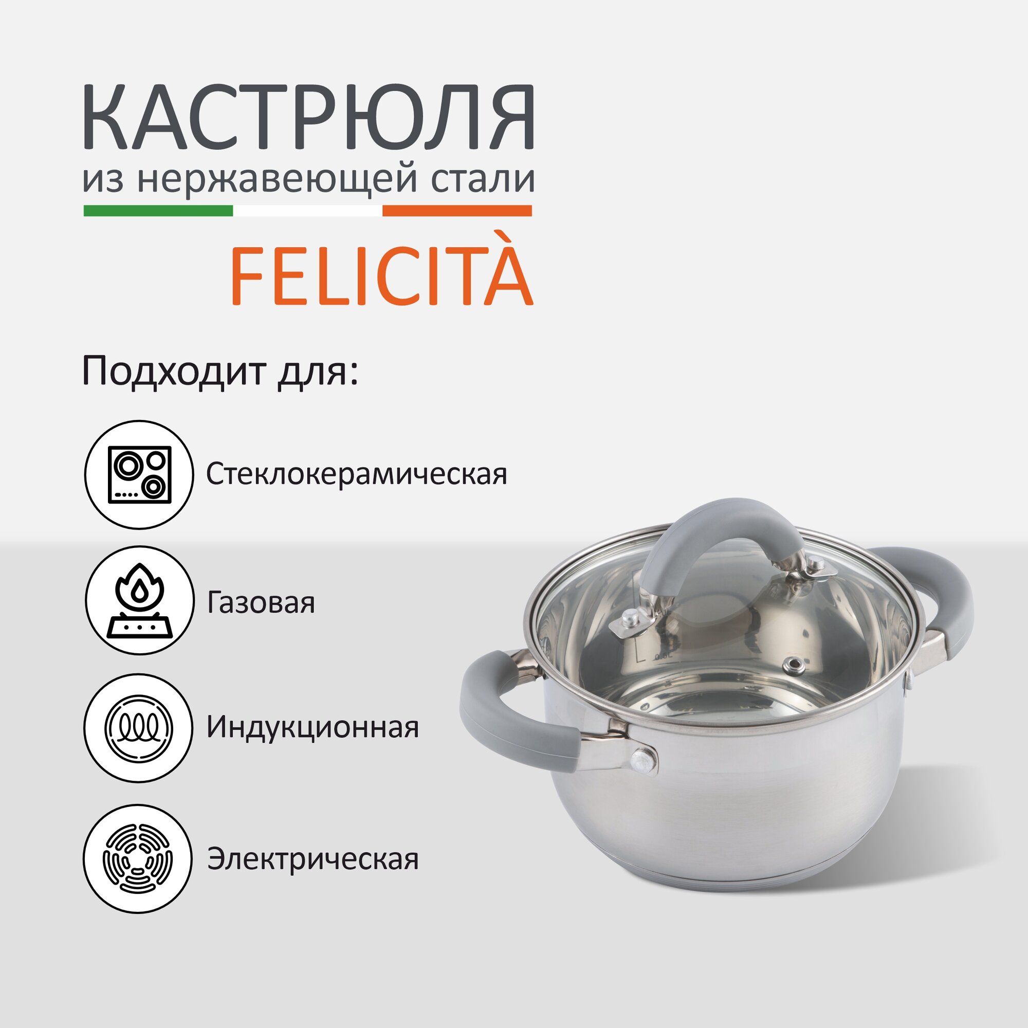 Кастрюля Felicità, объем 2 л, индукционное дно