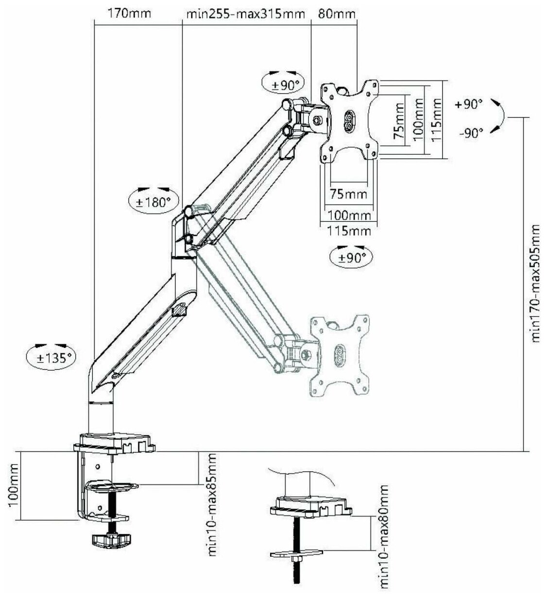 Настольный наклонно-поворотный кронштейн для монитора Ultramounts UM708 информация: