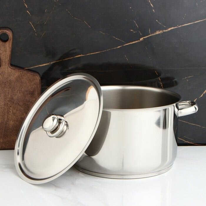 Отзывы на Кастрюля цельнотянутая Профи , 10 л, d 28 см, металлическая крышка, с теплораспределительным слоем, капсульное дно, цвет серебряный