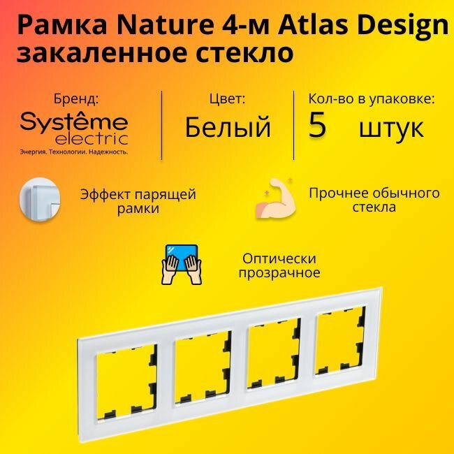 Рамка 4-м AtlasDesign Nature стекло бел. | код ATN320104 | Schneider Electric (5шт.в упак.) информация: