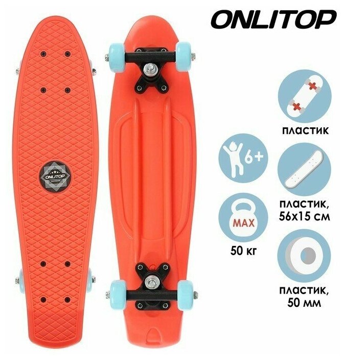 10 цен на Пенниборд 56 х 15 см колеса PVC 50 мм пластиковая подвеска цвет оранжевый