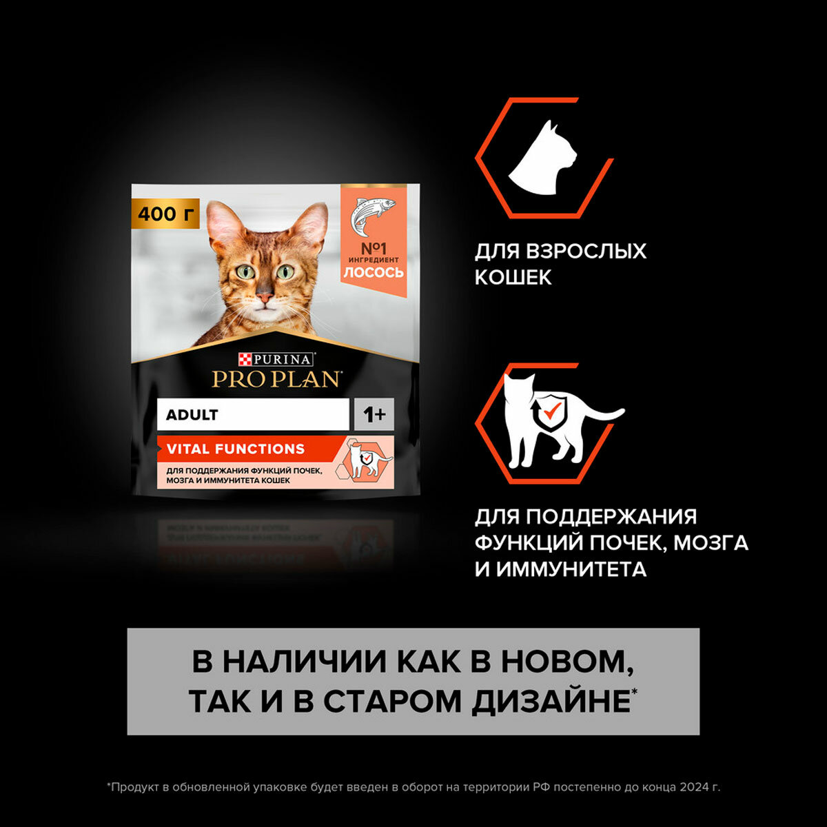 PRO PLAN CAT ADULT VITAL FUNCTIONS SALMON для взрослых кошек с лососем (0,4 + 0,4 кг) информация: