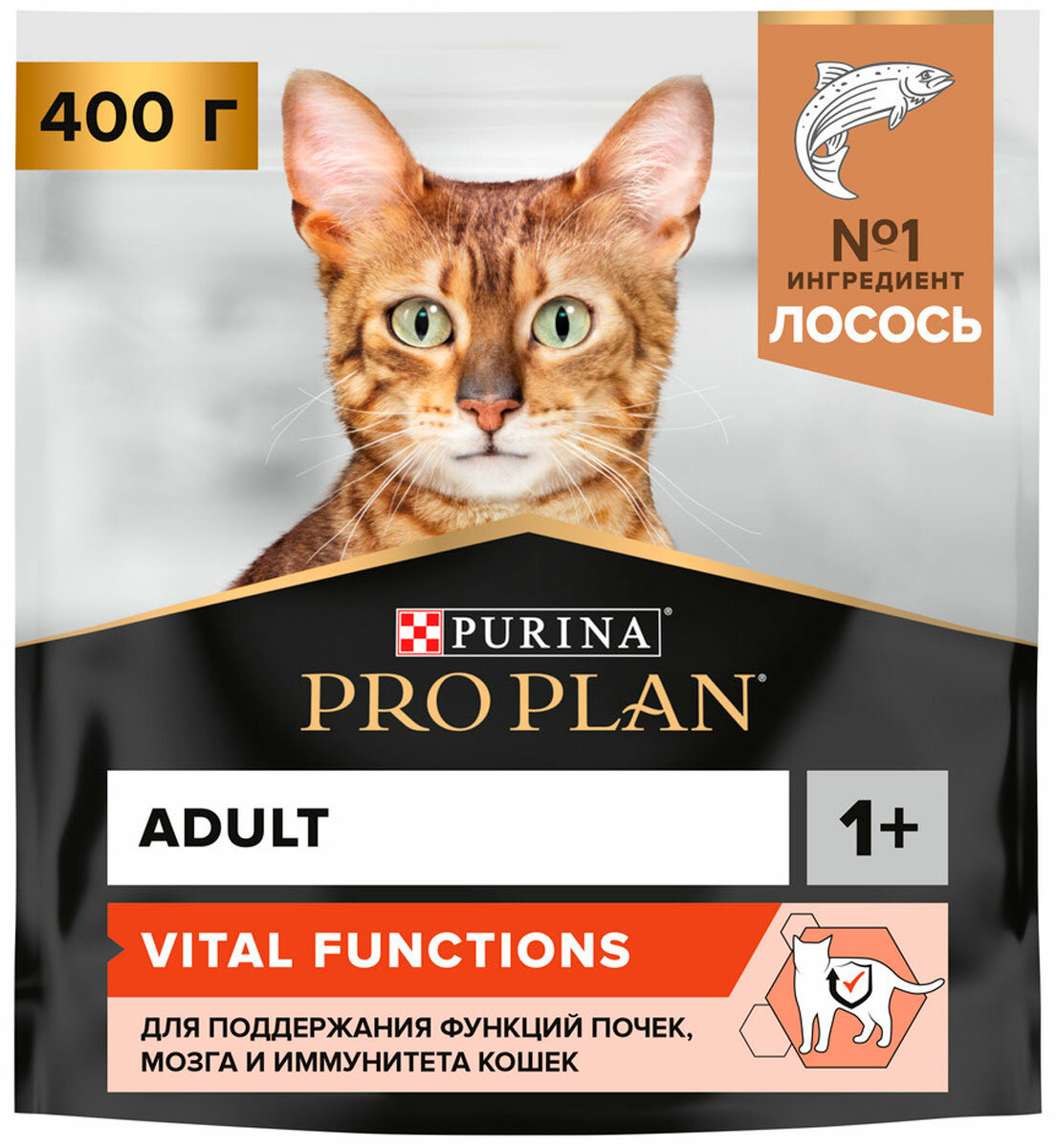 10 цен на PRO PLAN CAT ADULT VITAL FUNCTIONS SALMON для взрослых кошек с лососем (0,4 + 0,4 кг)