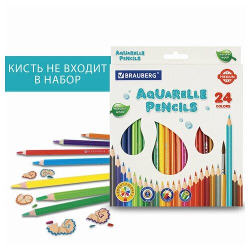 Карандаши цветные акварельные BRAUBERG PREMIUM AQUARELLE, 24 цвета, грифель мягкий 4 мм, 181673 В комплекте: 1шт.