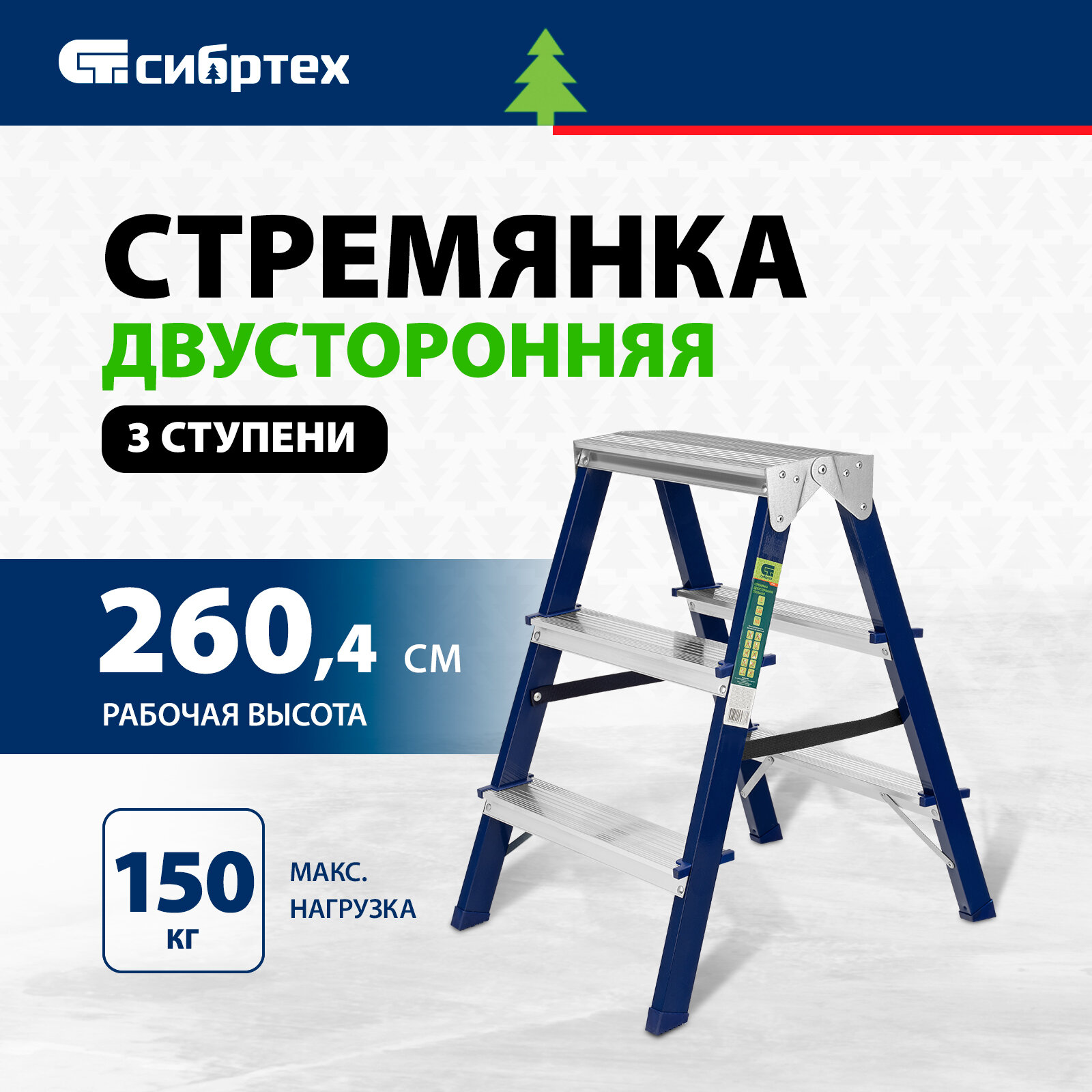 Сибртех Стремянка двусторонняя 3ст., стальная, 97933