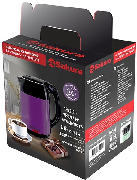 Чайник электрический Sakura SA-2168BV двухслойный, чёрный/фиолетовый 1.8л информация: