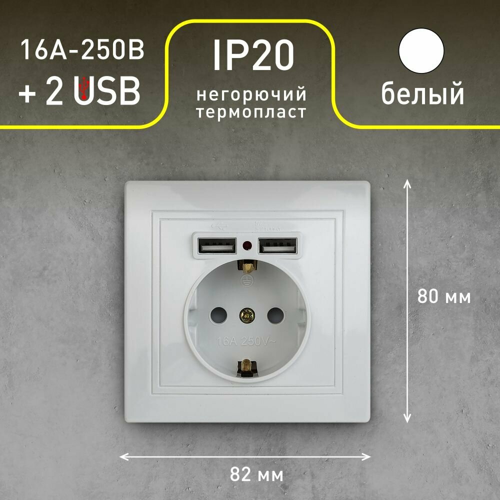 Розетка Intro Plano 1-410-01 с заземлением 2P+E Schuko со шторками, 16А-250В + 2хUSB 5В-2,1А, IP20, СУ, белый арт. Б0053942 (1 шт.) информация: