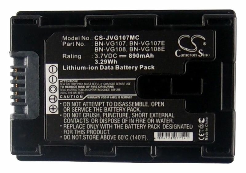 Аккумуляторная батарея CameronSino CS-JVG107MC для видеокамеры JVC BN-VG107E, BN-VG108, BN-VG108E, 890mAh информация: