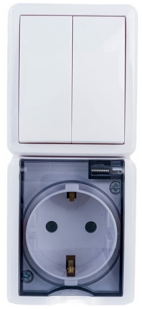 Блок розетка+выкл. двойн. верт. ЭРА 11-7408-01 IP54, 16A(10AX)-250В, ОУ, ЭРА Эксперт, белый арт. Б0036006 (1 шт.) информация: