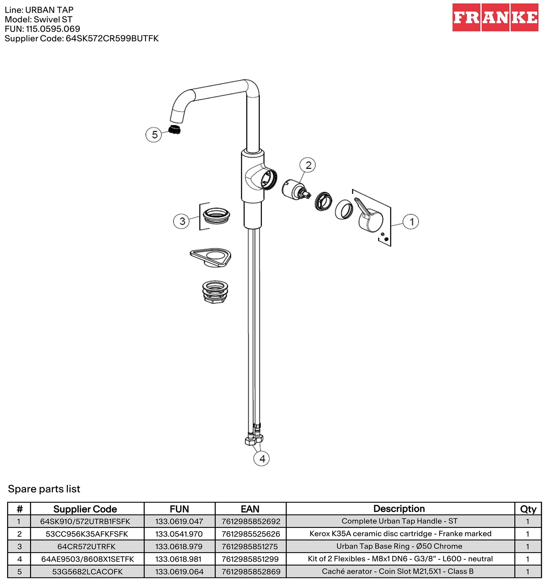 Смеситель Franke Смеситель Urban, сахара ѓ Управление сбоку справа ѓ Корпус из латуни ѓ Угол поворота излива 360° ѓ Керамический дисковый картридж ѓ Гибкие шланги 450 мм ѓ Отклонение рычага назад 10° Высота смесите 43 390 ₽