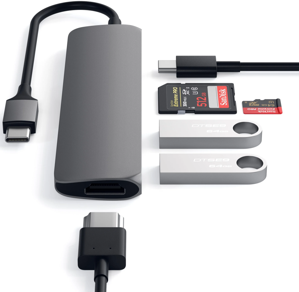 Переходник Satechi Slim Aluminum Type-C Multi-Port Adapter V2 серый космос (ST-SCMA2M)