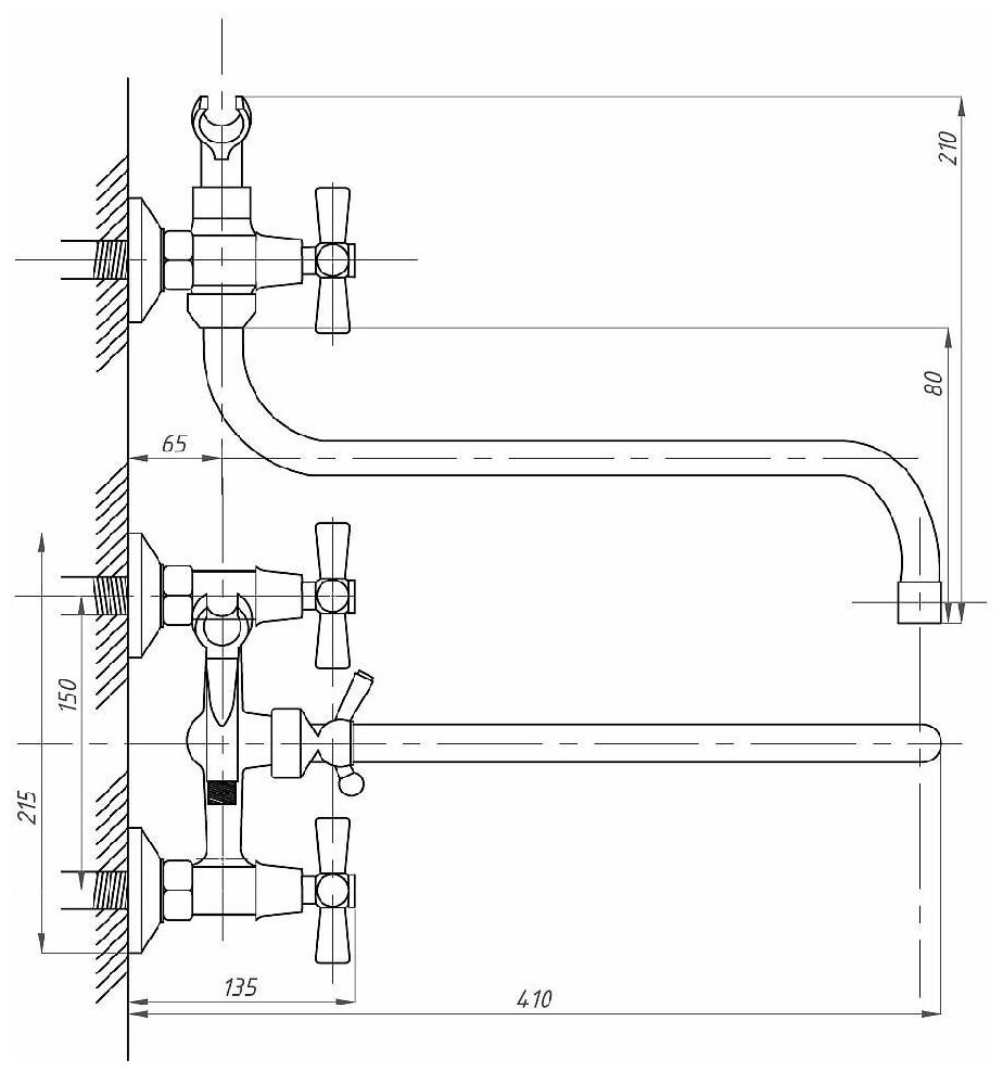 Смеситель на раковину настенный Эверест B46-350 с круглым поворотным изливом, кран-буксы 1/2", хром