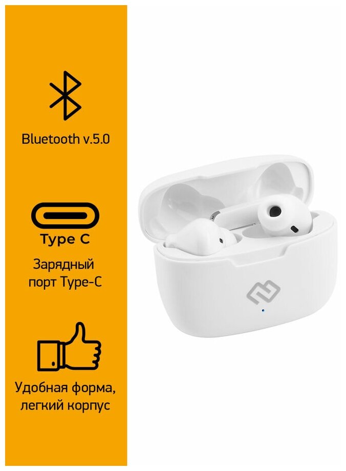 Наушники беспроводные Digma TWS-19 белый (tws19w) .