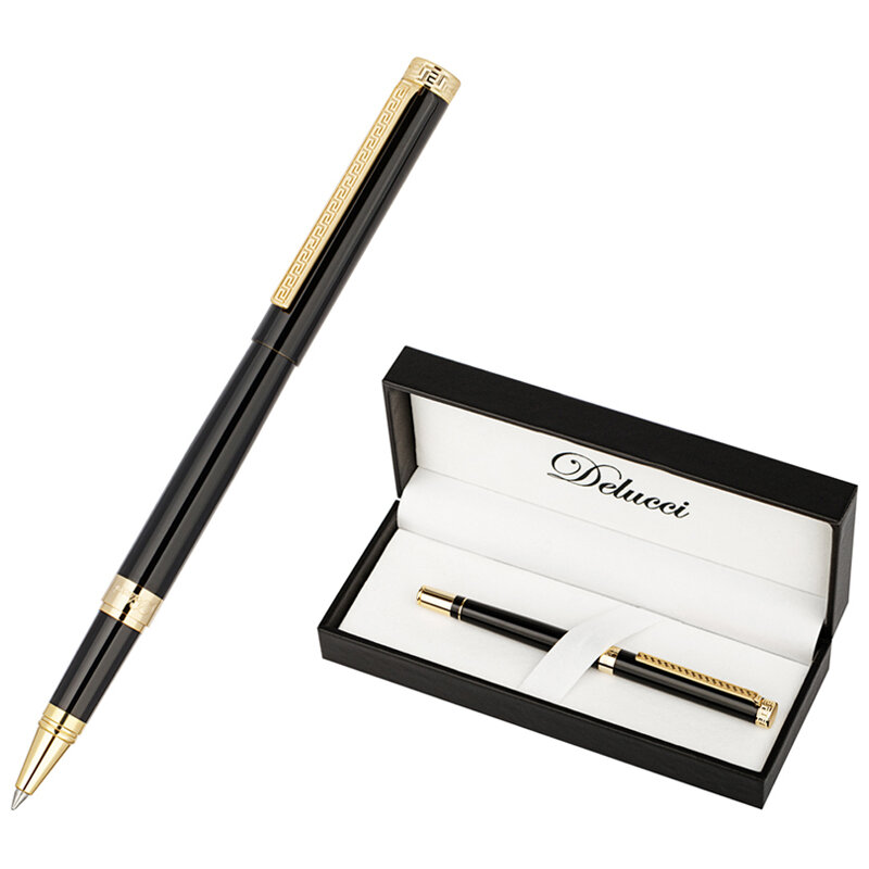 Отзывы на Комплект 2 шт, Ручка-роллер Delucci "Classico" черная, 0.6мм, корпус черный/золото, подарочная упаковка