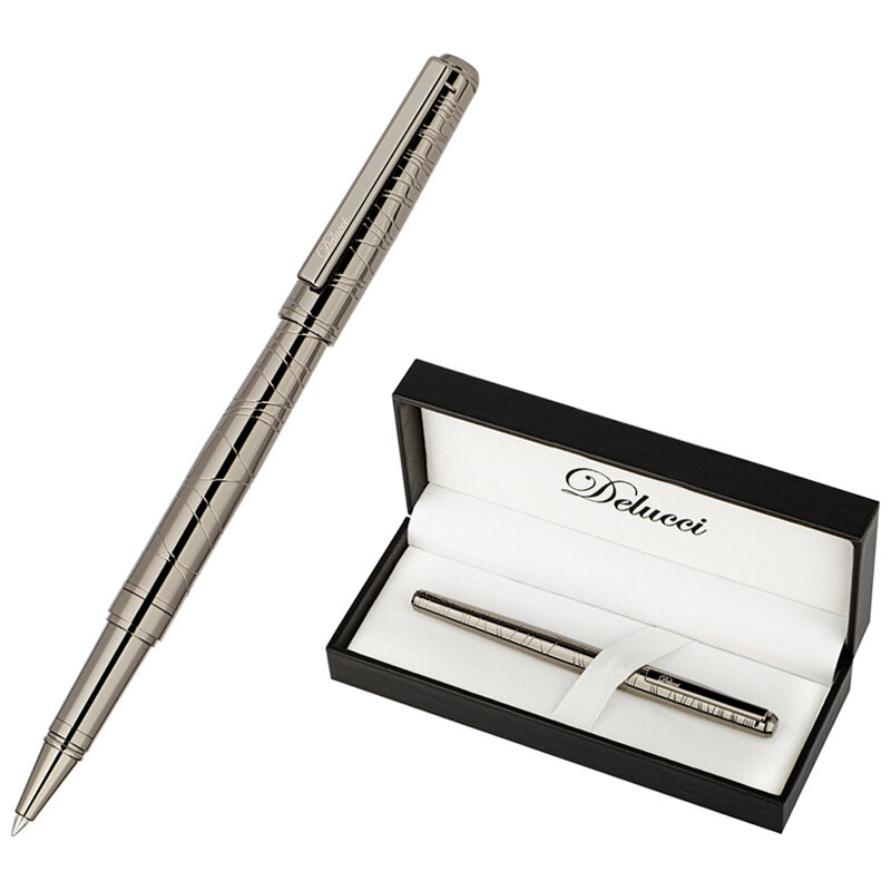 Ручка-роллер Delucci "Mistico" черная, 0.6мм, корпус оружейный металл, подарочная упаковка
