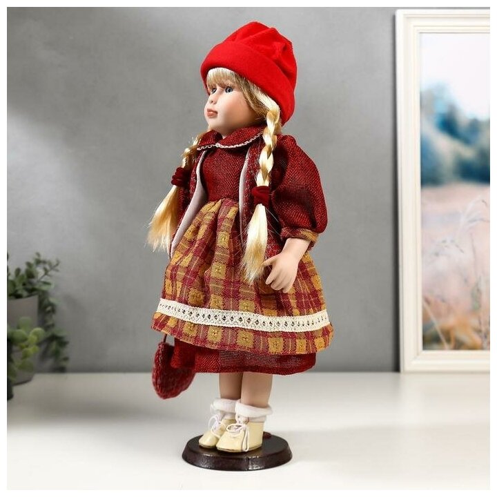 10 цен на Кукла коллекционная керамика "Марина в бордовом платье в клетку" 40 см