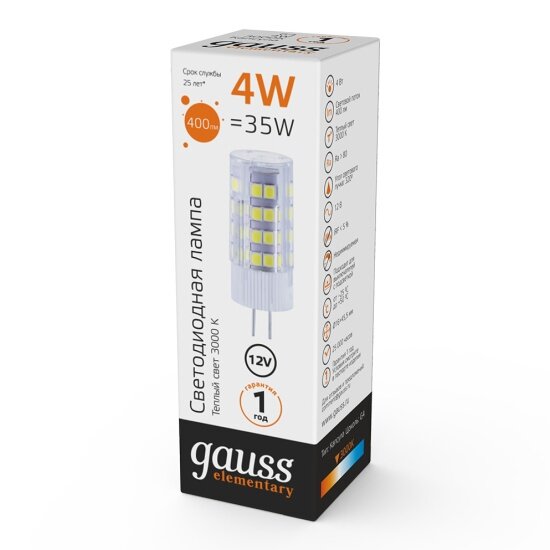 10 цен на Светодиодная лампа Gauss Elementary G4 12V 4W 400lm 3000K керамика LED 1/10/200