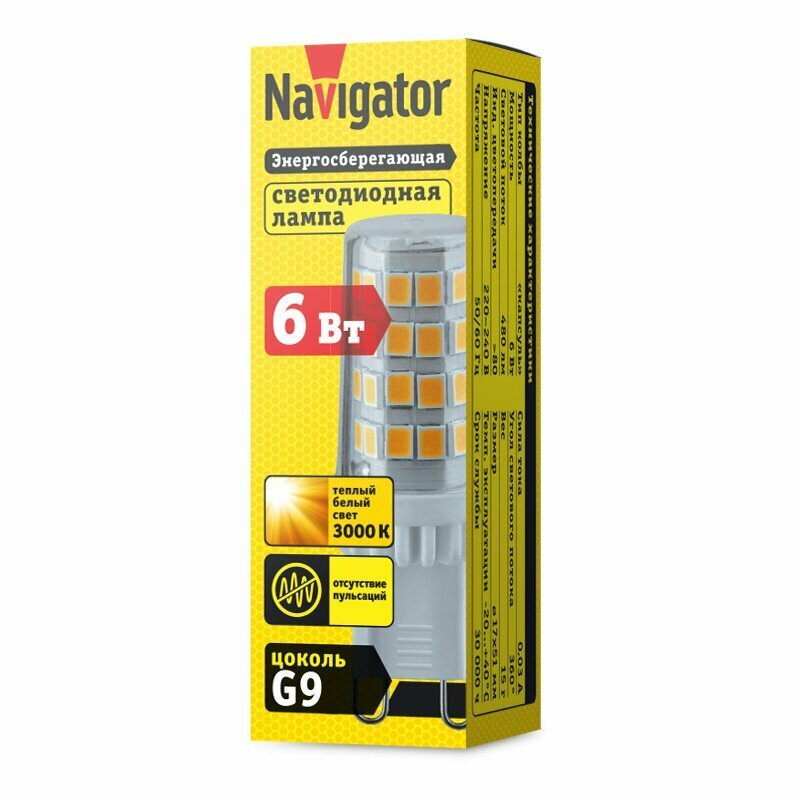 Лампа Navigator NLL-P-G9-6-230-3K-NF (без пульсаций)