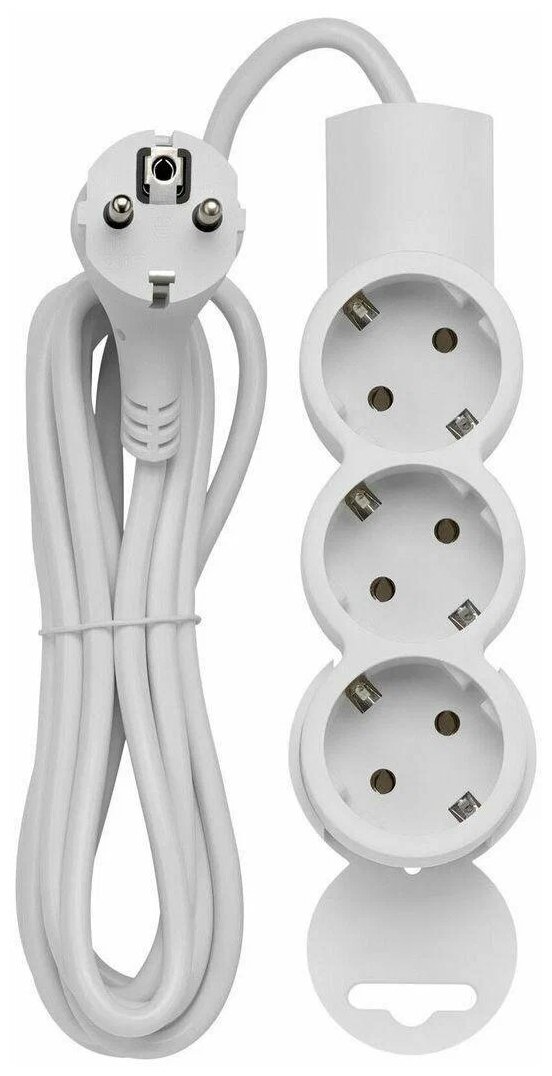 duwi Удлинитель Duwi, 3 розетки, 3 м, 10 А, 2200 Вт, ПВС 3х0.75 мм2, с з/к, белый