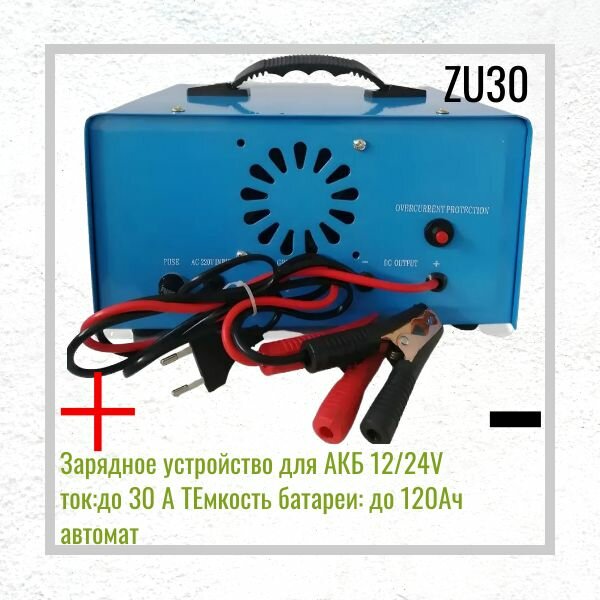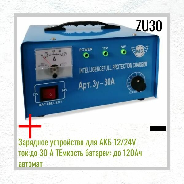 10 цен на Зарядное устройство для АКБ 12/24V ток:до 30 А ТЕмкость батареи: до 120Ач автомат
